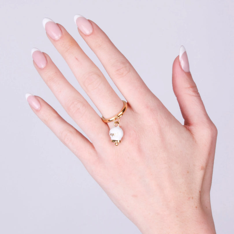 Anello in Acciaio con Campanella Capri – Bianco e Finitura Dorata