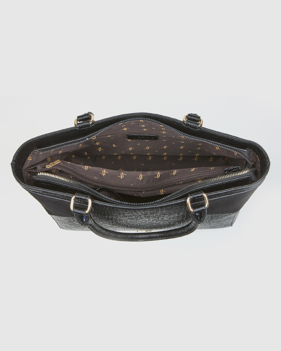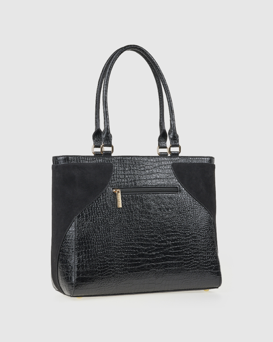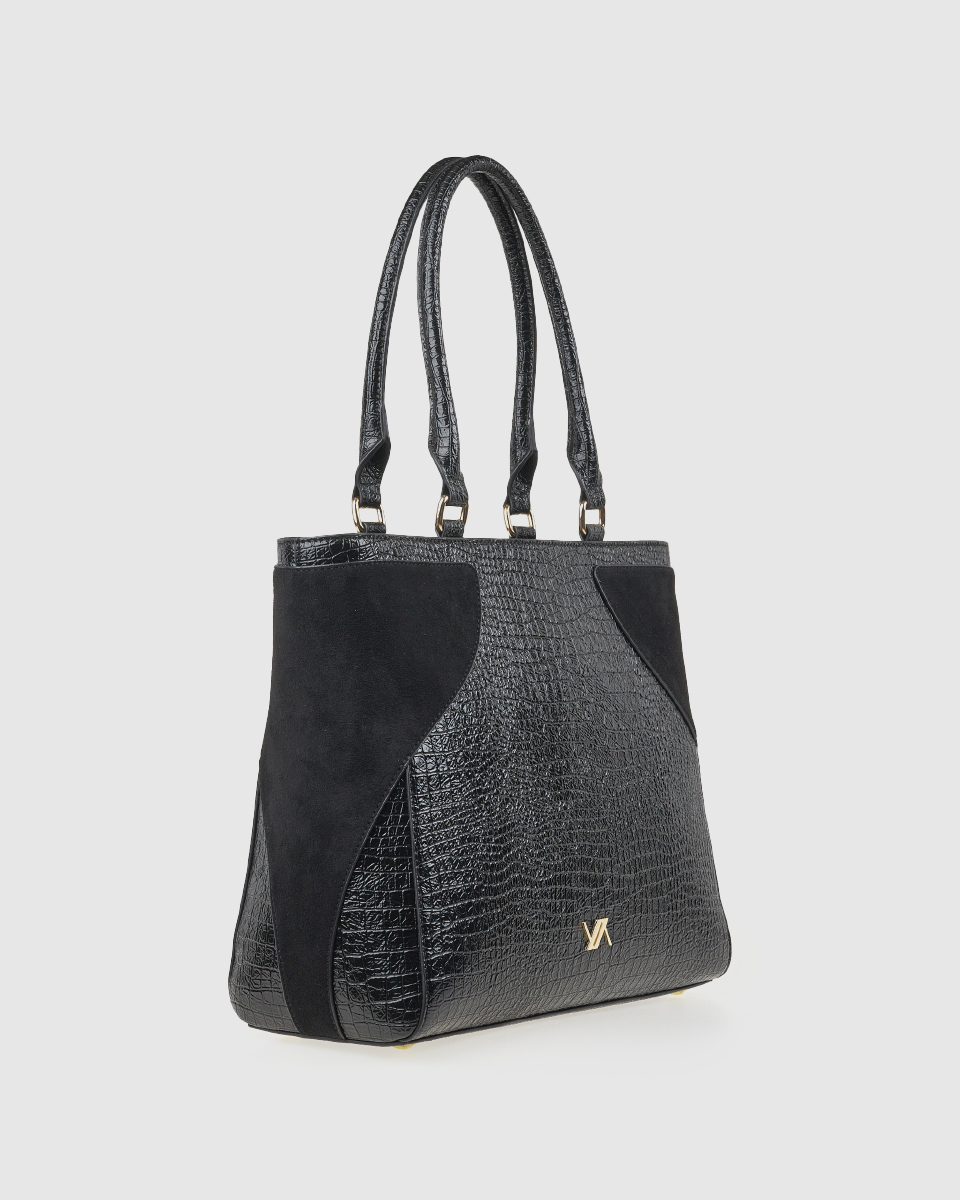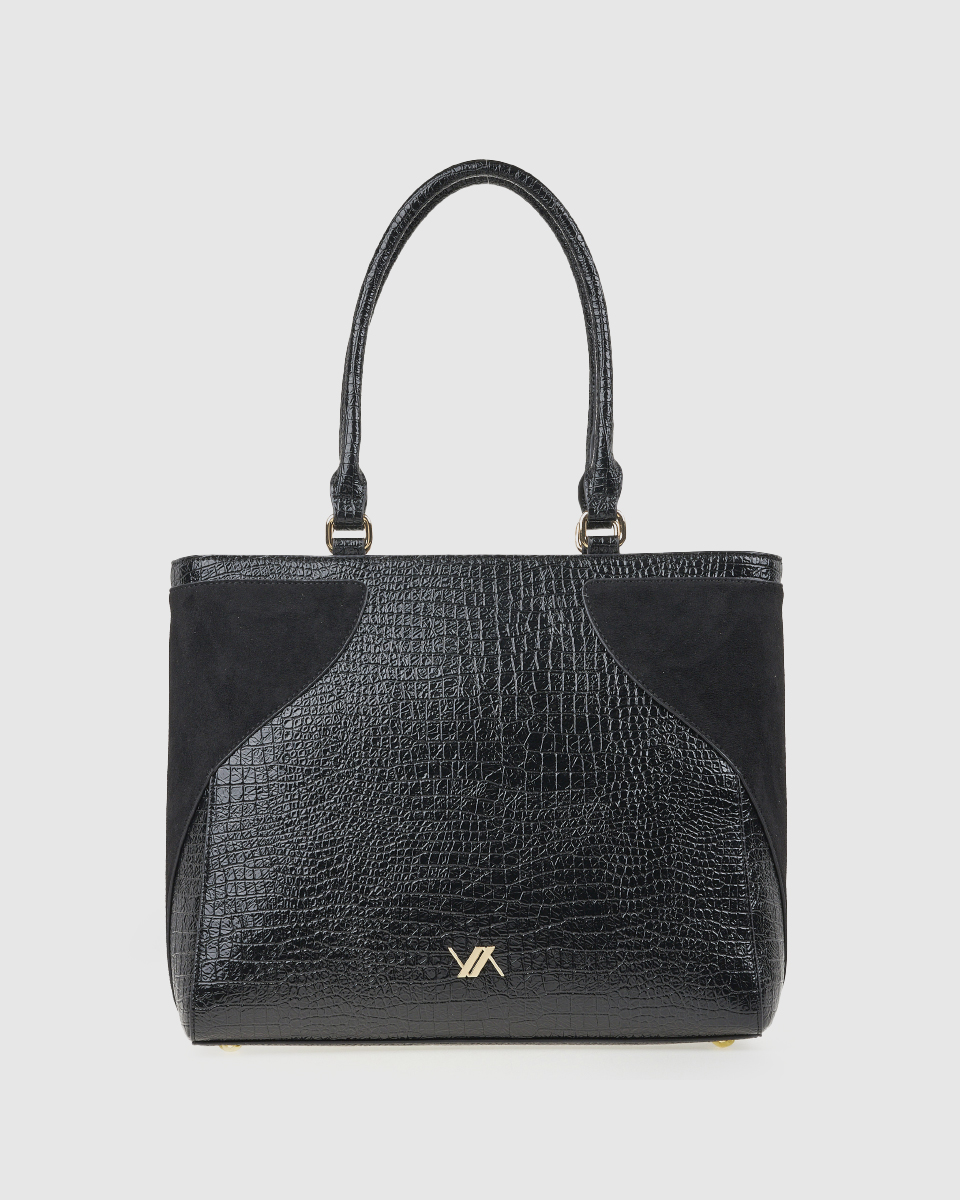 La borsa a tracolla da donna Verde unisce eleganza e praticità. La combinazione di similpelle effetto coccodrillo e pelle scamosciata crea un gioco di texture di grande impatto. Il logo metallico sul davanti aggiunge un dettaglio decorativo, mentre le linee pulite e la struttura spaziosa rendono la borsa ideale per i look quotidiani.