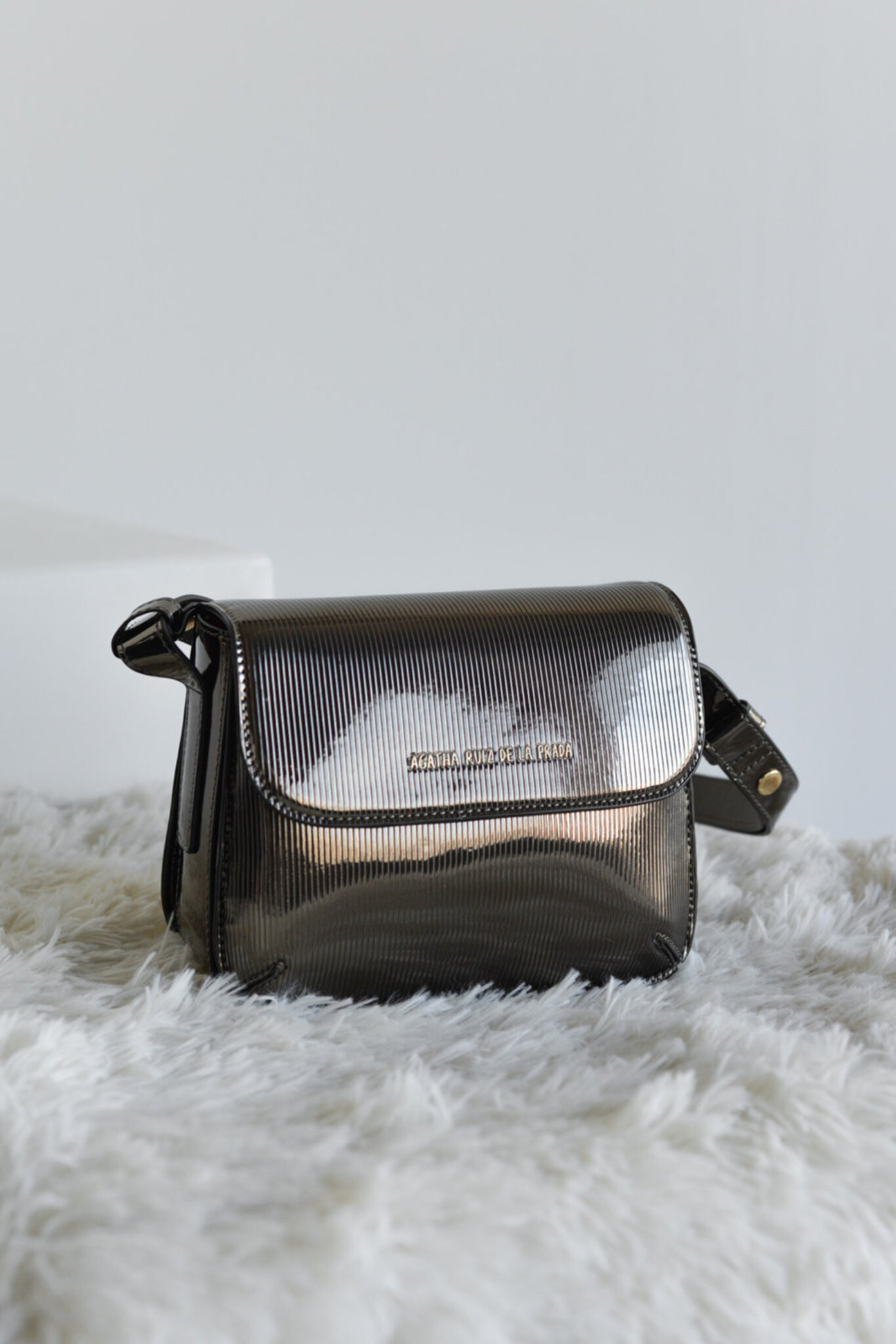 Borsa a tracolla color argento metallizzato. Misure: 20x16x10 cm.