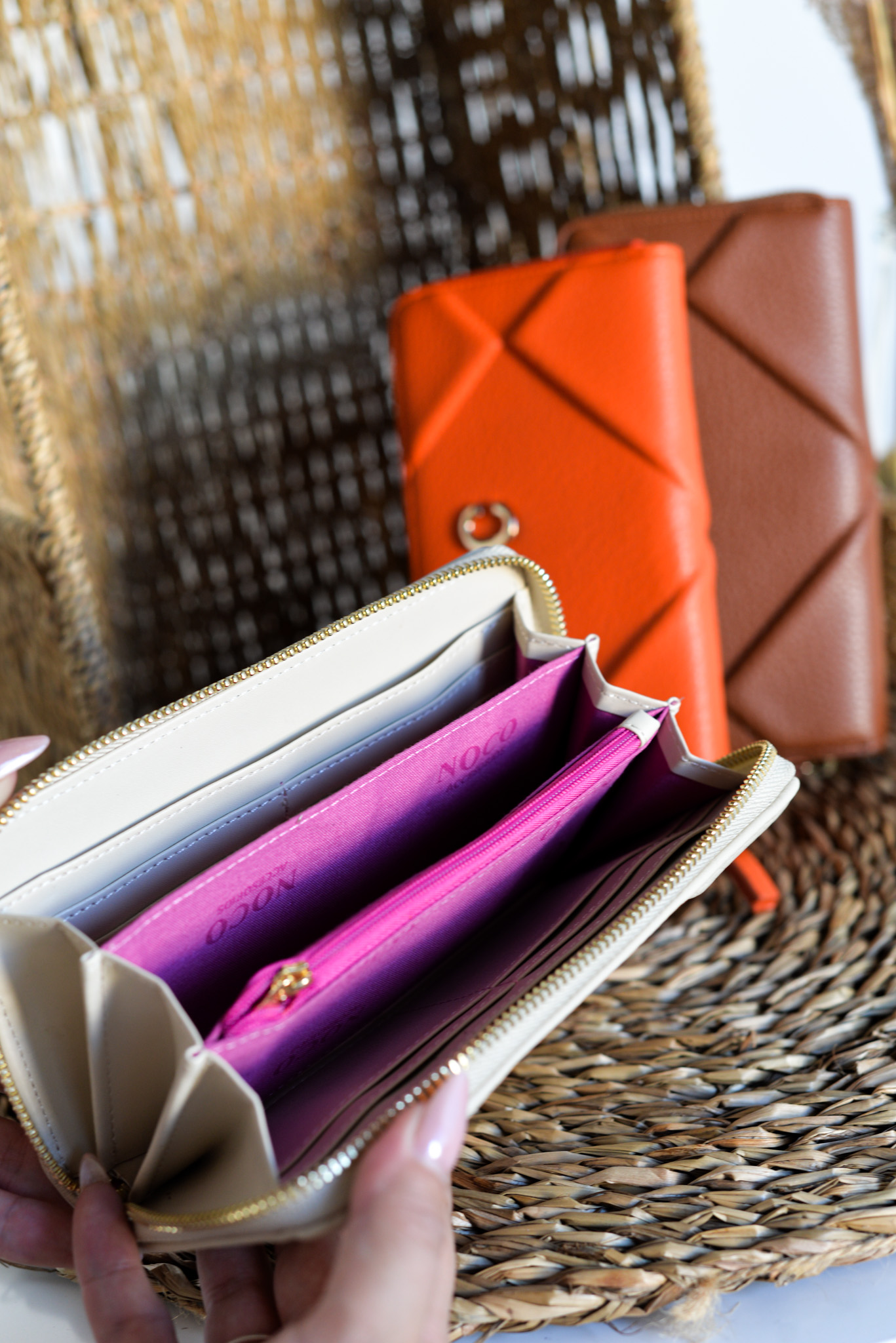 Il portafoglio Noco è l’accessorio ideale per chi cerca la funzionalità senza rinunciare allo stile. Realizzato in similpelle vegana trapuntata con un elegante motivo a rombi in rilievo , questo portafoglio compatto è la scelta perfetta per trasportare monete, banconote e carte in modo sicuro, con un tocco di sobrio lusso.